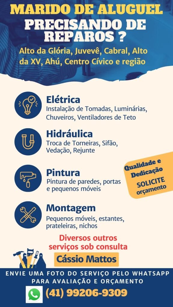 Atendimento prioritário na Região Norte de Curitiba. Chego rápido para resolver seu problema no Juvevê, Cabral e arredores.